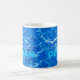 Blaues Wasser, das in der Sonne spielt. Kaffee-Tasse. Sie können das Hintergrundbild von Wasser und das Bild mit einem Meeresvogel und dem Schild Atlantik ändern oder löschen