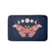 A celestial pink Atlas moth spreads its wings beneath a glowing sequence of lunar phases, set against a midnight sky scattered with shimmering stars. The balance of nature and cosmos creates a design that feels both grounded and otherworldly — perfect for anyone drawn to night skies, mystical beauty and boho vibes, this moon magic bath mat will add good energy to your bathroom. | The matching shower curtain and towels are available in my store.