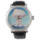 Uhr, Klassische Damenuhr mit schwarzen Lederarmband