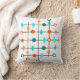Dieses Kissen hat Mitte des Jahrhunderts ein modernes Design eines Gitters in schwarzen Linien mit orangen und aquamarinen Kreise und Diamanten.