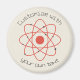 Custom magnets with curved text and atom structure, ideal for any science themed event.