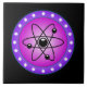 Thema Wissenschaft Ein kreisförmiges Bild mit dem Symbol des Atoms im Inneren. Ein rosa Hintergrund kontrastiert hell mit dem schwarzen Symbol. Ein lila Rand mit weißen Sternen kreist um die Abbildung herum. Ein cooles Bild für Geeks und Naturwissenschaftler.