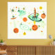 Meine originelle Vektorgrafik von Retrokatzen auf einem Weltraumabenteuer, in Orange, Aqua, Gold, Grün und Schwarz auf texturiertem Elfenbein und blasser Goldstange.