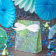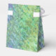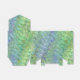 Ein moderner Begriff aus der Mitte des Jahrhunderts: überlappende atomare Formen überlagern ein digitales Crosshatch in leuchtenden Grüntönen und frischer Blues.