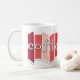 Genießen Sie Ihre retro Art der NachmittagsKaffeepause mit dieser Mitte des Jahrhunderts inspirierten Kaffee-Tasse mit grafischen Bildern der Atomart in den Schatten des Rotes und des Rosas. Die Tasse liest "coffeetime" in einem retro Restaurantart-Schriftart und Spaßfarben, die Sie in Zeit zurücknehmen.
