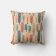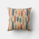 Dieses Kissen hat ein modernes Design von langen Ovalen in Pfirsich, grün, blau, aquamarin und hellbraun mit schwarzen Linien mit Kreise an den Enden.