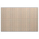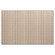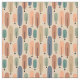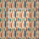 Dieser Stoff hat ein modernes Design von langen Ovalen in Pfirsich, grün, blau, aquamarin und hellbraun mit schwarzen Linien mit Kreisen an den Enden.