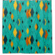 Dieser Duschvorhang hat ein modernes atomares Design von Diamanten und Sternexplosionen auf einem türkisfarbenen Feld.