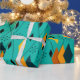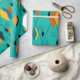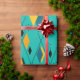 Dieses Verpackungspapier hat ein modernes atomares Design von Diamanten, und Sternexplosionen auf einem Gebiet von türkis.