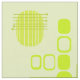 Ein modernes abstraktes Kunstdesign aus der Mitte des Jahrhunderts, das in den 1950er Jahren perfekt in die Welt passte. Verschiedene Formen von ovalen Kreisen und Linien in Chartreuse oder hellen Tennisball gelb.