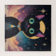 Atomfuturistische, kosmische schwarze Katze im Mon Puzzle