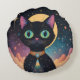 Atomfuturistische, kosmische schwarze Katze im Mon Rundes Kissen