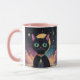 Atomfuturistische, kosmische schwarze Katze im Mon Tasse