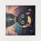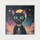 Atomfuturistische, kosmische schwarze Katze im Mon Wandteppich