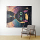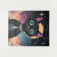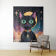 Atomfuturistische, kosmische schwarze Katze im Mon Wandteppich