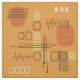 Ein modernes abstraktes Kunstdesign aus der Mitte des Jahrhunderts, das in den 1950er Jahren perfekt in die Welt passte. Verschiedene Formen ovaler Kreise und Linien in Ocker, Orange und Gold.
