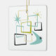 Add that splash of fun and color to your Christmas tree with this fabulous atomic era mid century modern holiday ornament! This design features abstract squares, starbursts, and a boomerang in the colors of yellow, aqua blue, avocado green, and black...so funky!