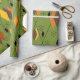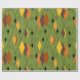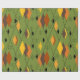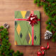 Dieses Verpackungspapier hat ein modernes Diamantendesign aus der Mitte der 70er Jahre und Sternexplosionen auf einem grünen Feld.