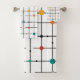 Dieses Handtuchhandtuch-Set hat ein modernes Design eines atomaren Gitters mit Kreisen in Retrofarben. Woll eine andere Farbe? Nachricht.
