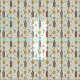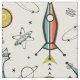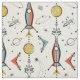 Meine originale Vektorgrafik von Retro Atomic Kitty Rockets, Satelliten, Monde, Atome, Sternexplosionen, Galaxien, Pulsaren, Schallwellen und Sternschüsse Sterne, in Gold, Aquamarine, dunkelorange, schwarz und off weiß.