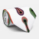 This necktie has a mid-century modern design of atomic lines with "feathers" on either end and an outline around each one.
