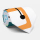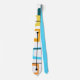 Diese Krawatte hat ein Design von Rechtecken, die sich an einem Ende in groben Orange-, Grün-, aquamarin-, lila-, Blau-, Rosa- und Gelbtönen mit atomaren Linien erstrecken, die sie kreuzen.