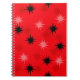 Dieses Atomic Red Sternexplosionen Notebook hat den ganzen modernen Spaß an der Küche Ihrer Großmutter, abzüglich des klebrigen Linoleums. Das kitschige Design ist mit einem roten Hintergrund mit goldenen Fußketten und zufällig platzierten Sternexplosionen in Schwarz und Rot- und Dunkelrosa-Tönen gestaltet. Dieses Vintag inspirierte Muster ist Mod genug, um stylisch und Retro genug zu sein, um klassisch zu sein. Mit diesem minimalistischen Design lassen Sie sich etwas Liebe geben.