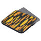 Atomic, schwarz-orange geometrisches Muster. Laptopschutzhülle