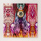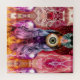 Schöne, skurrile, surreale und trippige Collage einer seltsamen, ansonsten weltlich weiblichen Einheit in Regenbogenfarben.