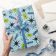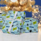 Atomische Blues und Green auf blauem Medium Geschenkpapier