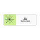 These return address labels have a mid-century modern design of an atomic starburst in a retro color palette of orange, yellow, blue, green and gray.
