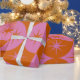 Atomische Sternexplosionen auf rosa Orangen Scallo Geschenkpapier