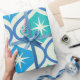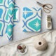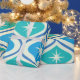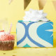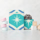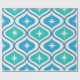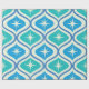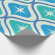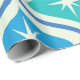 Dieses elegante, moderne Muster der atomaren Sternexplosion aus der Mitte des Jahrhunderts, das auf den blauen und aquamarinen Ogee-Ovalen auf beigem Hintergrund angebracht ist. Es ist großartig aussehendes Packpapier für jeden, der geometrische Retro-Designs Liebe