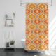 Es handelt sich um ein elegantes, modernes Muster der atomaren Sternexplosion aus der Mitte des Jahrhunderts, das in orangen und gelben Ogee-Ovalen auf beigem Hintergrund angeordnet ist. Es ist ein großartiges Geschenk für jeden, der retrogeometrische Designs Liebe