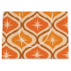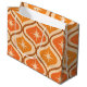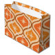 Es handelt sich um ein elegantes, modernes Muster der atomaren Sternexplosion aus der Mitte des Jahrhunderts, das in orangen und gelben Ogee-Ovalen auf beigem Hintergrund angeordnet ist. Es ist eine tolle Geschenktasche für jeden, der das geometrische Retro-Design Liebe hat