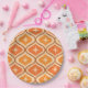 Es handelt sich um ein elegantes, modernes Muster der atomaren Sternexplosion aus der Mitte des Jahrhunderts, das in orangen und gelben Ogee-Ovalen auf beigem Hintergrund angeordnet ist. Es ist großartig aussehende Papiertafel für jeden, der geometrische Retro-Designs Liebe