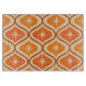 Das ist ein elegantes, modernes atomares Retro-Sternexplosionen-Muster, das auf orangefarbenen und gelben Ogee-Ovalen auf beigem Hintergrund platziert ist. Es ist ein großartiges Schnittbrett für jeden, der geometrische Retro-Designs Liebe