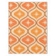 Es handelt sich um ein elegantes, modernes Muster der atomaren Sternexplosion aus der Mitte des Jahrhunderts, das in orangen und gelben Ogee-Ovalen auf beigem Hintergrund angeordnet ist. Es ist großartig Tischdecken für jeden, der die Liebe retrogeometrischer Entwürfe.