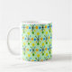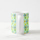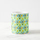 Diese Tasse ist mit einem modernen Design atomarer Sternexplosionen aus der Mitte des Jahrhunderts auf grünem Hintergrund bedeckt.