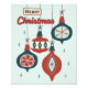 Feiern Sie die Urlaubssaison im nostalgischen Stil mit unserem atomaren Weihnachtsgeschenktag Mitte des Jahrhunderts. Dieses skurrile Design besticht durch eine lebhafte Serie von Retro-Ornamenten, die an die 50er und 60er Jahre erinnern und Ihren Festlichkeiten einen Pop Vintagen Charmes verleihen. Senden Sie herzliche Wünsche mit einer Touch von gestern, ideal für diejenigen, die den zeitlosen Reiz der Feriendekoration Mitte des Jahrhunderts schätzen.