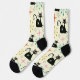 Das ist ein niedliches, schwarzes, atomares Katzenmuster mit Retro-Sternexplosionen aus der Mitte des Jahrhunderts in Rosa, Orange und aquamarin auf hellcremefarbenem Hintergrund. Es sind großartige Socken für Frauen, die Katzen Liebe haben