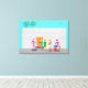 Sie sind eingeladen zum gesellschaftlichen Ereignis des Jahres mit diesem Atomic Palm Springs Stewardess Party gedehnte Leinwand Print Design. Die drei Vintagen Flugbegleiter von konkurrierenden Fluggesellschaften kommen auf ihrem Karo in ihr kitschiges Blockhotel der 1960er Jahre. Einer der fabelhaft hunky bellhops in einer rosa Retro-Uniform hält die orangefarbene Tür, während der andere mit dem Frauengepäck kämpft. Aquamarine Palmen schmücken den unvorstellbar türkisblauen Himmel, da ein Jetliner über ihm fliegt. Dieses Design wird Sie zum Sprichwort bringen: "Zu Ihrer Marke, Jet-Set, los!"