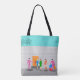 Sie sind eingeladen zum gesellschaftlichen Ereignis des Jahres mit diesem Atomic Palm Springs Stewardess Party Tasche Design. Die drei Vintagen Flugbegleiter von konkurrierenden Fluggesellschaften kommen auf ihrem Karo in ihr kitschiges Blockhotel der 60er Jahre. Einer der fabelhaft hunky bellhops in einer rosa Retro-Uniform hält die orangefarbene Tür, während der andere mit dem Frauengepäck kämpft. Aquamarine Palmen schmücken den unvorstellbar türkisblauen Himmel, da ein Jetliner über ihm fliegt. Dieses Design wird Sie zum Sprichwort bringen: "Zu Ihrer Marke, Jet-Set, los!"