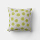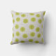 Dieses Kissen hat ein modernes Design von bräunlichen Bögen, die auf weißem Hintergrund wiederholt werden, mit sich wiederholenden grün-goldenen Kreisen mit dunkleren grün-goldenen Sternexplosionen.