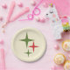 Atomic Stars Mitteljahrhundert Retro Weihnachten Rote Creme Papier Teller. Mitte des Jahrhunderts modernistische Sternexplosionen für ein nostalgisches Vintages Gefühl. Einfaches Design mit minimalistischem 50er 60er Raum im Alter von Xmas Urlaub Ästhetik. Von Kierkegaard Design Studio.