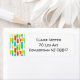 Diese Rücksendeadressen-Aufkleber haben ein modernes Design von langen Ovalen in Gelb, Orange, Grün und Türkis mit schwarzen Linien mit Kreise an den Enden.