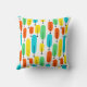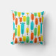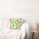 Dieses Kissen hat ein modernes Design von langen Ovalen in Gelb, Orange, Grün und Türkis mit schwarzen Linien mit Kreisen an den Enden.