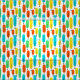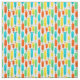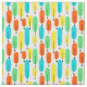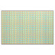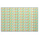 Dieser Stoff hat ein modernes Design von langen Ovalen in Gelb, Orange, Grün und Türkis mit schwarzen Linien mit Kreisen an den Enden.