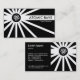 Ein kühn rochenes Design. Firmenname auf der Vorderseite mit Namen und Kontaktdaten auf der Rückseite. Das Atom-Motiv stammt von einem der Schriftart von Zazzle, die als dekorative Eigenschaft beibehalten werden können, um durch Ihr eigenes Logo ersetzt zu werden. Die Rückseite hat auch eine Version des Röntgendesigns zusammen mit dem Atom-Motiv.