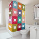 Dieser Duschvorhang hat ein modernes Design von Quadraten mit abgerundeten Rechtecken mit einer Antenne in modernen Farben Mitte des Jahrhunderts. Das gleiche Design in verschiedenen Farben gewollt? Nachricht.